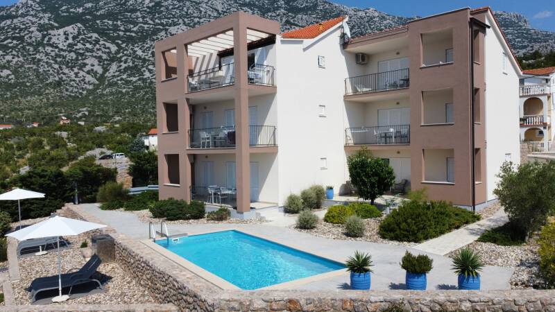 Unser Ferienhaus liegt bei Karlobag/Gespannschaft Senj und besteht aus fünf schönen Ferienwohnungen für jeweils 1 bis 4 Personen mit herrlichem Blick auf das Meer und die Insel Pag. Im Garten der Anlage steht unseren Gästen ein Swimmingpool zur Verfügung.