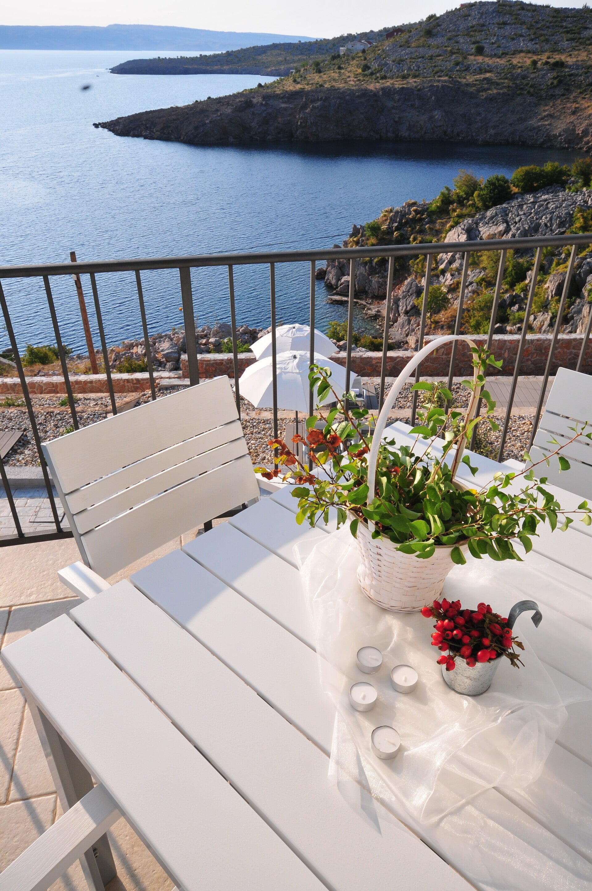 Die großen Terrassen/Balkone bieten einen traumhaften Blick auf das Meer und die Insel Pag.